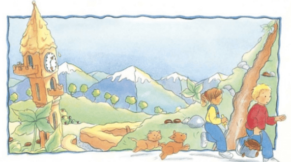 “Hello! I’m looking for a picture/chapter book I read in elementary school in the early 2000s. From what I remember, it’s about a pair of siblings who’s uncle is an explorer and tells them about a chocolate (or candy) mountain. The uncle disappears, so the siblings follow a map or clues to find him at the chocolate mountain. An element I remember is “I spy” questions throughout the book, where it will ask the reader questions like, “Can you spot the uncle’s monocle?” And the object would be hidden somewhere in the room or setting. I do not know the title or author, but the phrase “journey (or adventure) to the chocolate mountain” sticks out to me. Thanks so much in advance!”