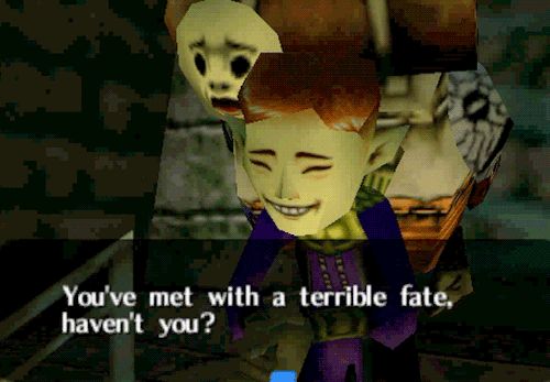 Majora’s Mask (2000) is my favorite Legend of Zelda game. The premise: In three days, on the night of the Carnival of Time, the moon will crash into Clock Town. Link must use the Ocarina of Time to relive these three days over and over until he is able to save the town — and the world? — from this terrible fate.